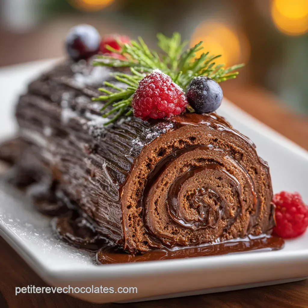 - Version Douce : Utilise une bûche chocolat mascarpone avec un insert de poires caramélisées.