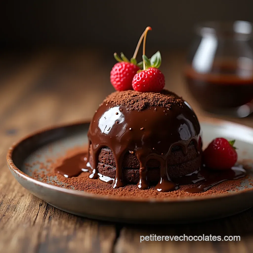 Pour un effet maximal sans trop d'effort, le saupoudrage de cacao amer pur tamisé juste avant de présenter est incontournable. Si vous voulez un look plus sophistiqué, déposez des copeaux de chocolat ou des rochers pralinés sur le dessus.