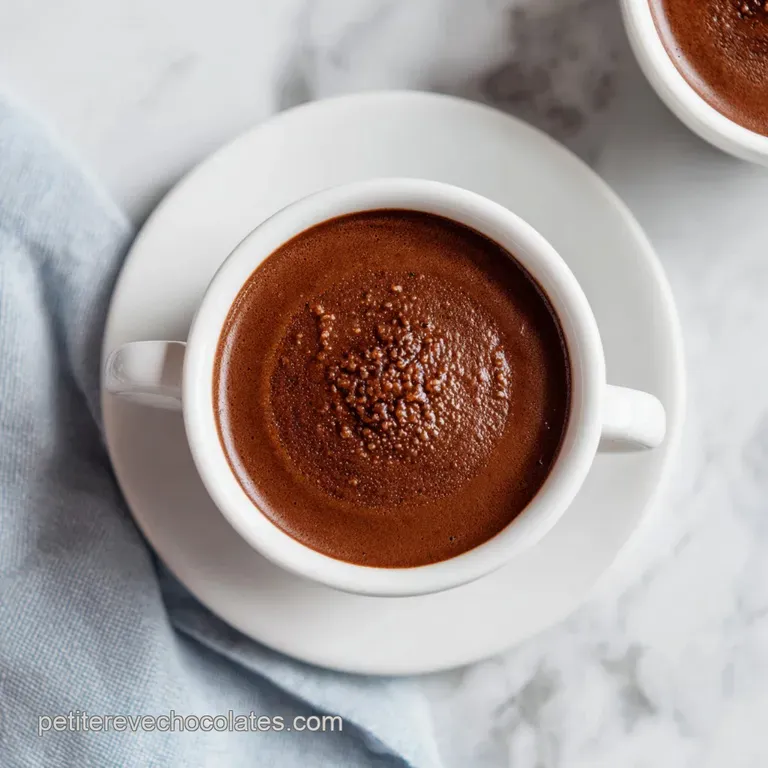 Ne te contente pas de verser et de partir. Ajoute une cuillère de crème fouettée maison (très peu sucrée) et râpe un peu de chocolat supplémentaire par dessus. Le contraste thermique entre la crème froide et le chocolat brûlant est un pur bonheur sensoriel.