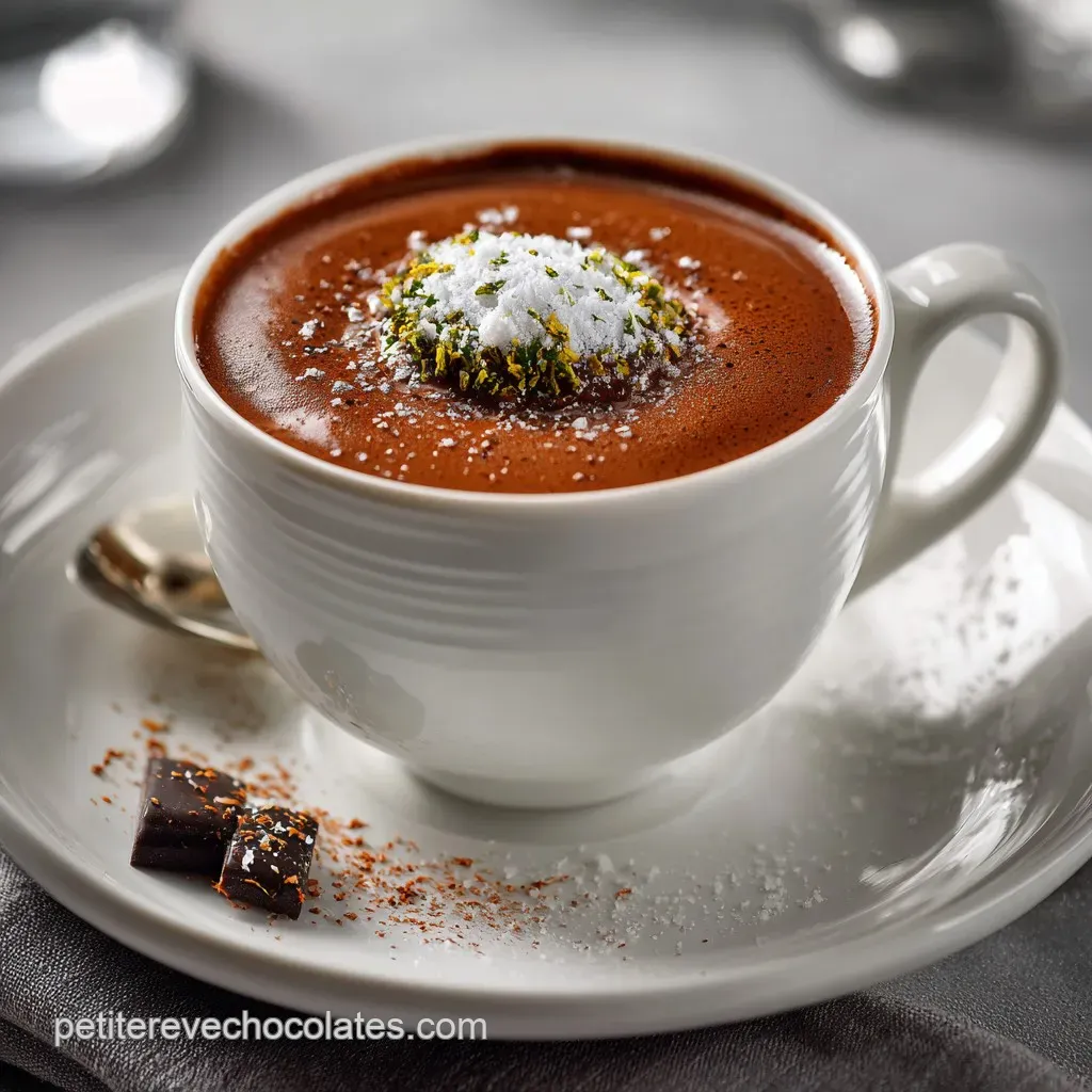 Pour les amateurs de desserts intenses, ce chocolat chaud est parfait à déguster après une part de Gâteau mousse au chocolat : La recette aérienne et intense . La boisson étant déjà si riche, un dessert léger en bouche mais puissant en goût est l’accord parfait.