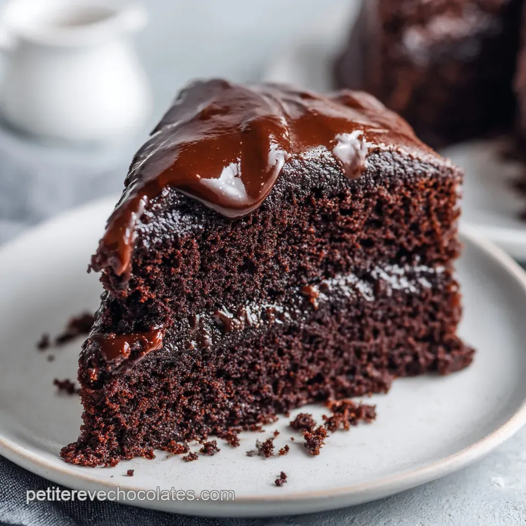 Ce gâteau se garde merveilleusement bien pendant 3 jours enveloppé dans du film alimentaire à température ambiante. Évite le frigo, car le froid fige les graisses du chocolat et rend la texture granuleuse.