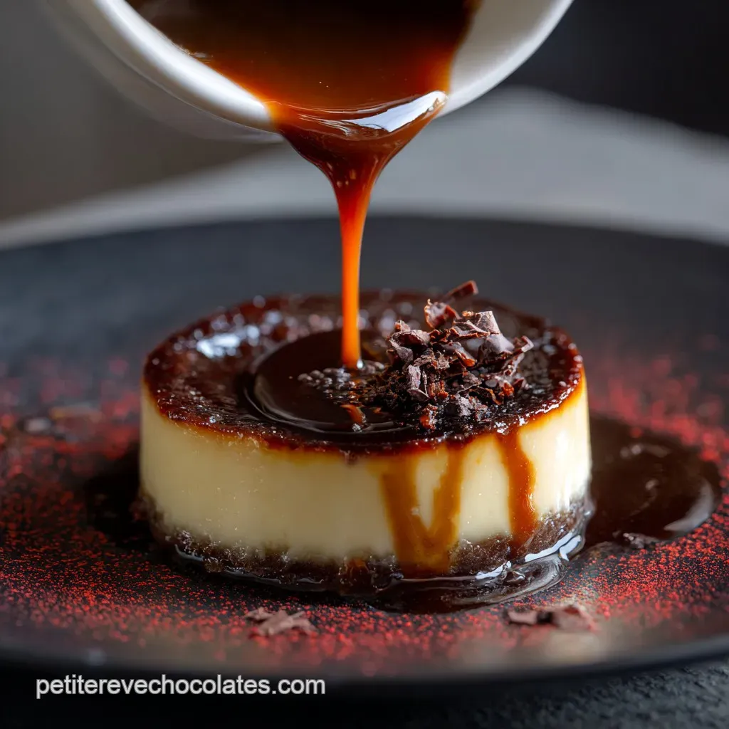 La base, composée de crème liquide entière (360 ml à 35% M.G.) et de lait entier, confère une richesse inégalée. En cuisant doucement au bain marie, la crème coagule progressivement sans jamais bouillir, ce qui évite la formation de bulles et de grains, assurant ainsi une consistance qui rappelle une ganache incroyablement légère.